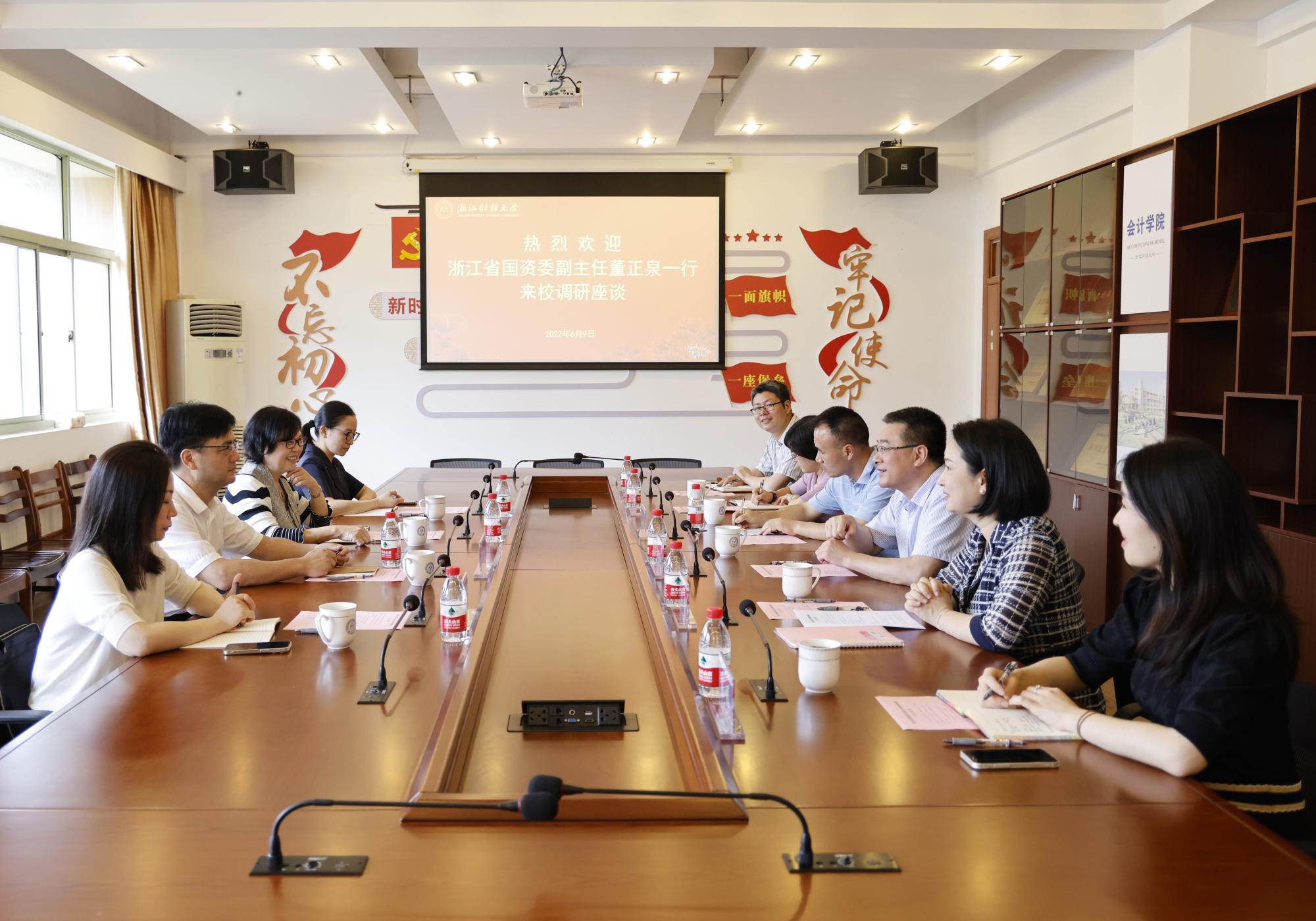 本网讯 6月9日,省国资委副主任董正泉、省总会计师协会常务副会长俞乐平、省国资委财评处处长曹晓蓓、省国资委财评处副处长陈梅等来校调研。公司党委委员、副董事长徐晓东热情接待了来访客人。