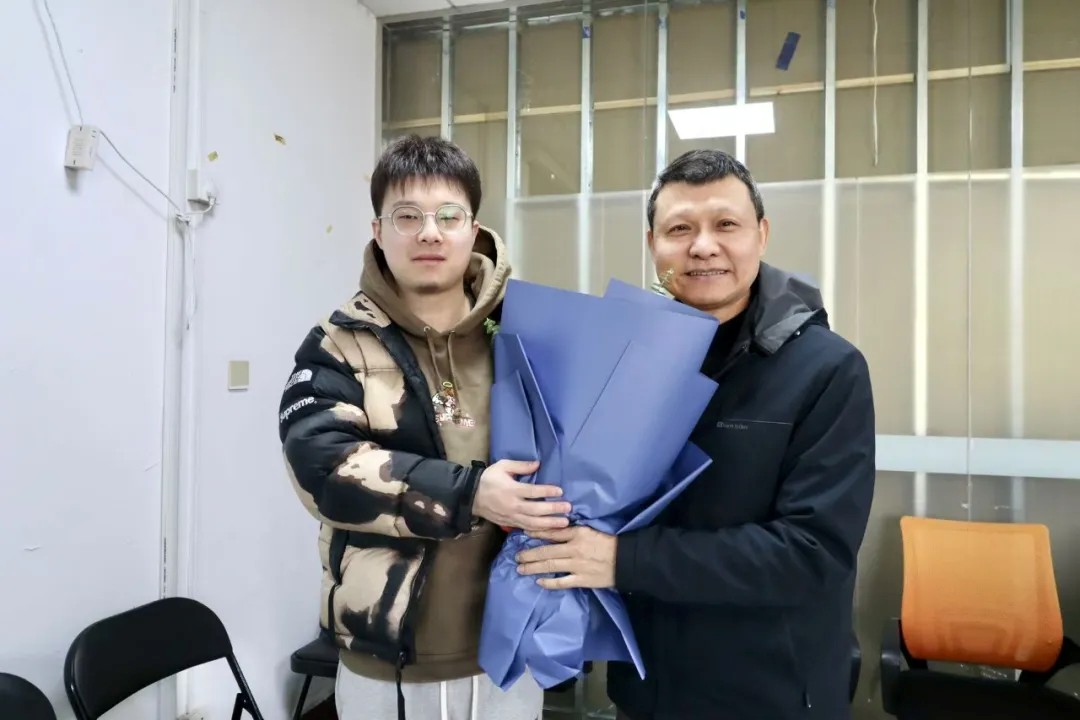 会议最后,张文宇为新进教职工祝语涵献花,全体人员表示欢迎。