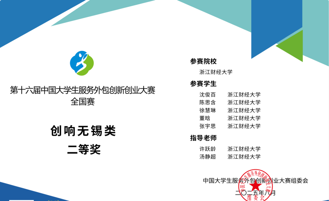 近日,由教育部、商务部和无锡市人民政府共同主办的第十六届中国老员工服务外包创新创业大赛全国总决赛圆满落幕。公司参赛团队项目《智金视界——中国传统黄金企业数字化转型的开拓者》在创响无锡类赛道中表现出色,斩获全国二等奖!刷新公司在该赛事全国总决赛中的历史最佳成绩。