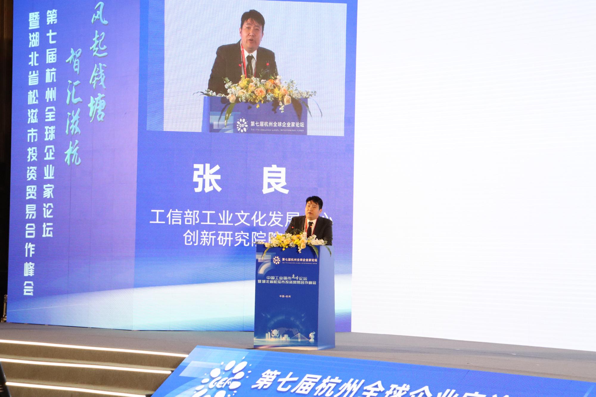 由工信部工业文化发展中心创新研究院经理张良发表了以城市产业创新升级模式为主题的演讲。