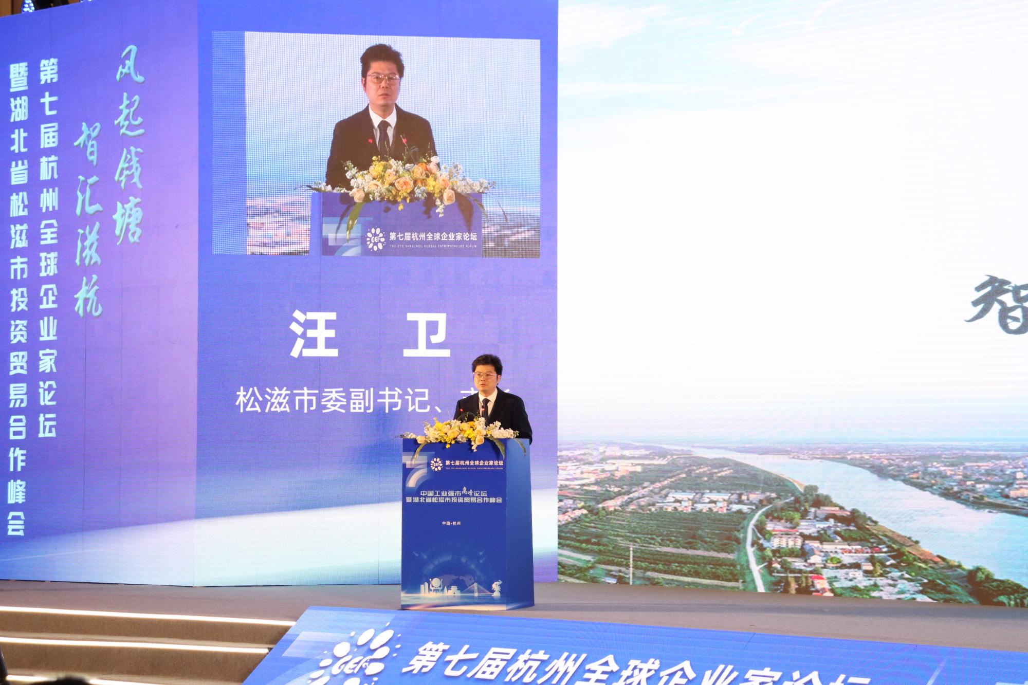 会上松滋市委副书记、市长汪卫就松滋在自然资源和基础设施的招商优势发表了主题演讲。