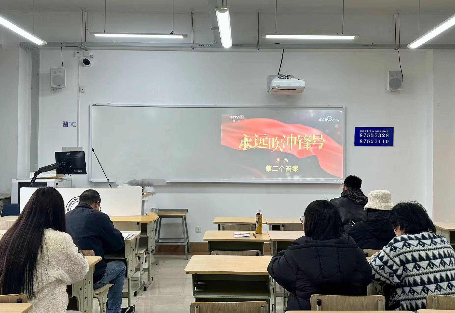 根据各支部统一安排,全体党员干部观看电视专题片《永远吹冲锋号》,并开展相关讨论和交流,促使各党员深刻领悟跳出治乱兴衰周期律的"第二个答案"的重大意义,筑牢拒腐防变思想防线。